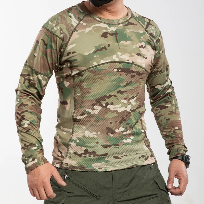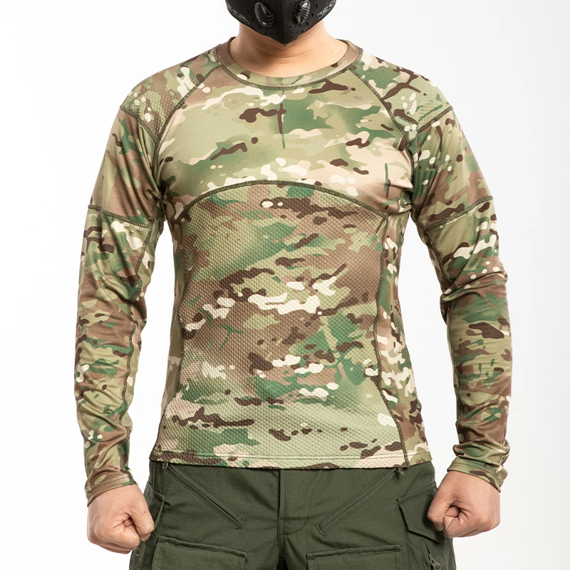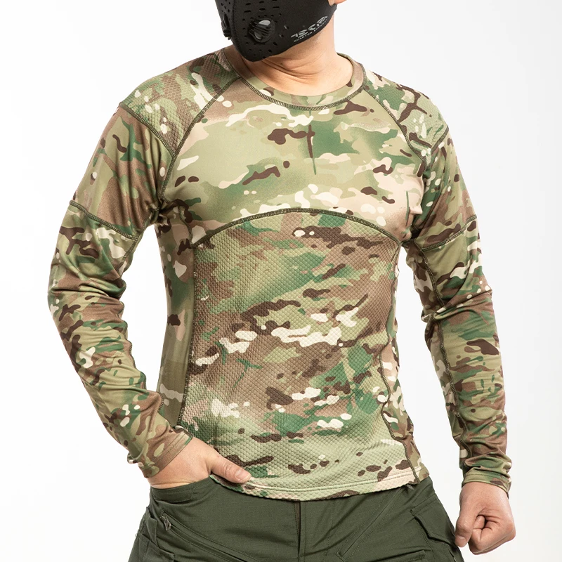 Men's Autumns Warm Camouflage Knitted Long-Sleeved Leggings T-Shirt 100% Polyester Plain Dyed Worested Nonwoven Slim